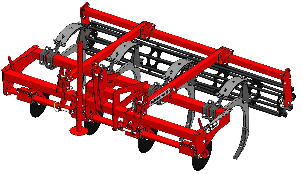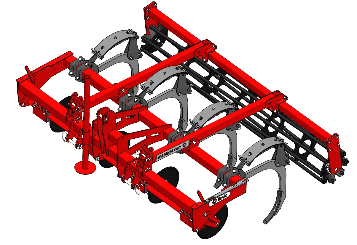 This is a conservation chisel plough that mounts the chisel plough tine. The frame consists of a cutting coulter, tine, and depth control roller. This frame was designed for the Africa market where farmers have small tractors and plant in virgin soil. The purpose of the Wajanja is to loosen the soil on the row that will be planted. Due to only disturbing the soil in the planting row, this implement is classified as a conservation tillage implement. The word Wajanja is the Swahili word for “bakgat”/clever.