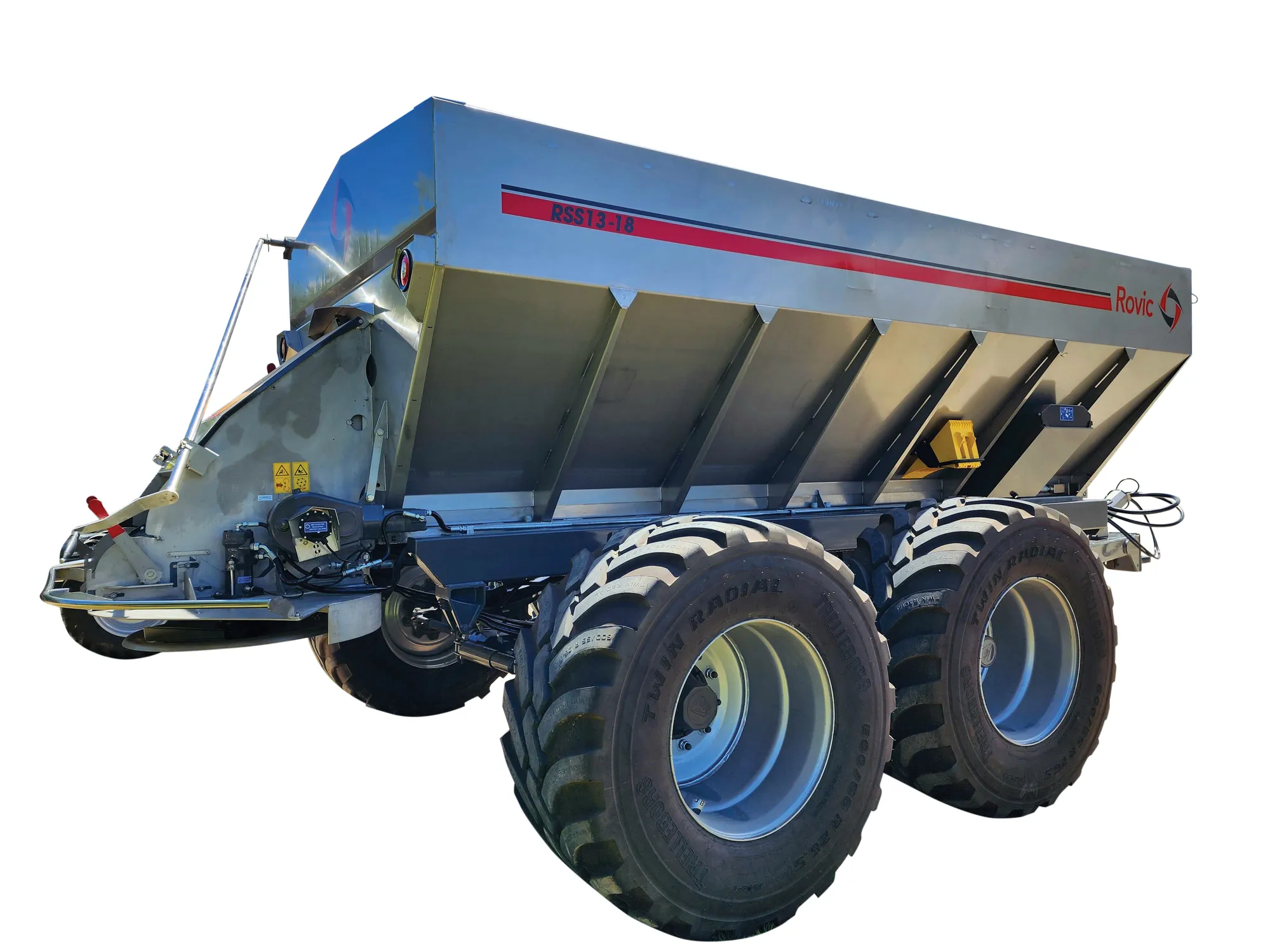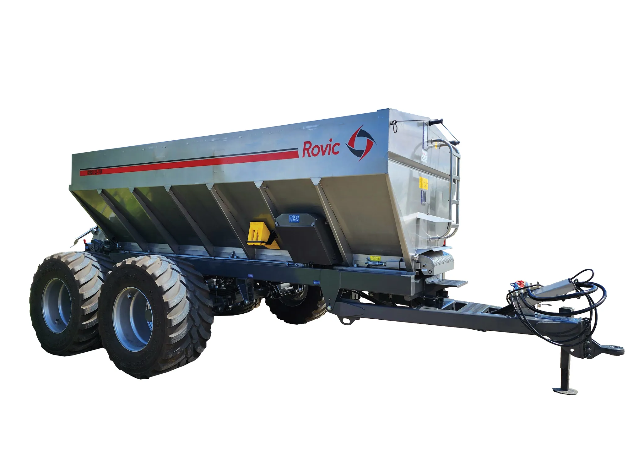 Rovic Syncrospread spreader can be ordered in either steel or stainless steel and is available in various sizes from 10m3, 13m3, 16m3. the spreader can also be ordered as single or duel chain drives and is compatible with various rate controllers. read more read less